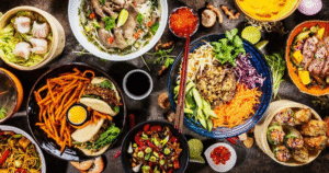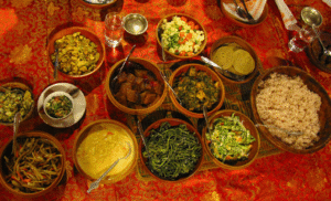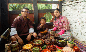 Bhutanese food is simple but flavorful. One of the most famous dishes is Ema Datshi, made with chili peppers and cheese. Rice is a staple food, often served with vegetables, meat, and cheese-based dishes.